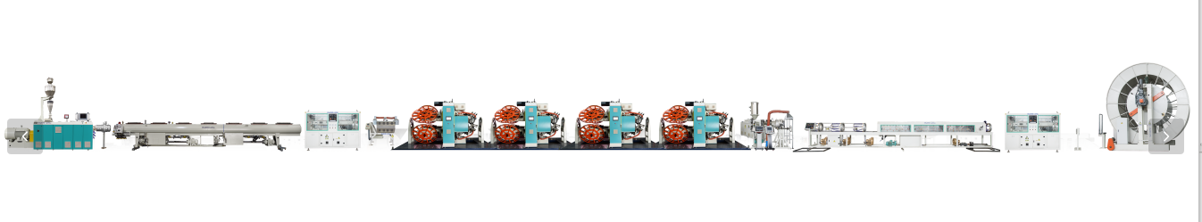 Γραμμή Εξώθησης Ενισχυμένου Θερμοπλαστικού Σωλήνα (RTP).αποτελείται από τρία μέρη. Το πρώτο μέρος είναι η εσωτερική μονάδα εξοπλισμού εξώθησης πλαστικών σωλήνων. Το δεύτερο μέρος είναι η ενδιάμεση στρώση μη μεταλλικού σύρματος ενισχυμένη μονάδα εξοπλισμού περιέλιξης. Το τρίτο μέρος είναι το εξωτερικόΜονάδα εξοπλισμού διέλασης επίστρωσης HDPE. Έχει τα πλεονεκτήματα της υψηλής απόδοσης, της υψηλής ταχύτητας, του υψηλού αυτοματισμού και της εξοικονόμησης ενέργειας. Είναι ένας ιδανικός εξοπλισμός για την παραγωγή σύνθετου σωλήνα RTP.