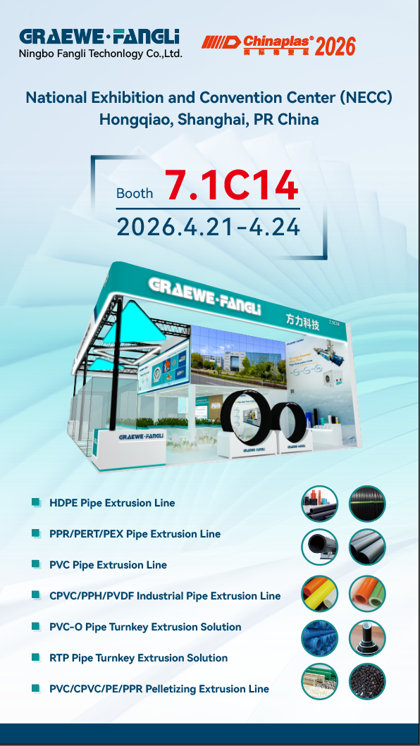 मराठी Καλώς ήρθατε στο περίπτερό μας 7.1C14 στο ChinaPlas 2026,Ningbo Fangli Technology Co., Ltd.(εφεξής «Fangli») ειδικεύεται στην Ε&Α, την παραγωγή και τις πωλήσειςπλαστικός εξοπλισμός διέλασης, νέες γραμμές παραγωγής για την προστασία του περιβάλλοντος, μηχανήματα συγκόλλησης πλαστικών σωλήνων και βοηθητικά μηχανήματα πλαστικών.